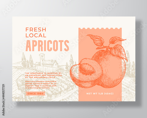 The watermark will not be included on Canvas Print.: Fresh local apricot food label template - abstract vector packaging design layout - modern typography