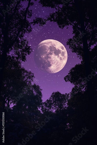 The watermark will not be included on Canvas Print.: Full moon in forest