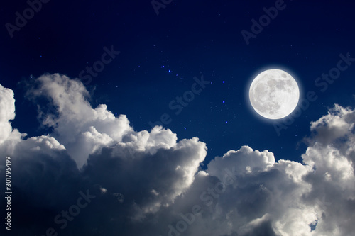Canvas Prints full moon with starry and clouds background. romantic night.