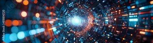 The watermark will not be included on Canvas Print.: Futuristic 360 degree video conference call with circular participant layout for business technology