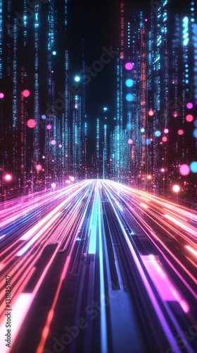 The watermark will not be included on Canvas Print.: Futuristic abstract scene with colorful light trails and dynamic motion in digital space