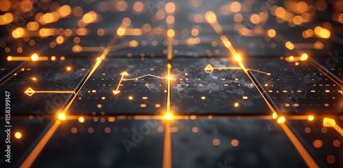 Canvas Prints futuristic chart grid with glowing golden arrow details on a shadowy black surface. - Canvas Prints Canvas Prints futuristic chart grid with glowing golden arrow details on a shadowy black surface. - Canvas Prints