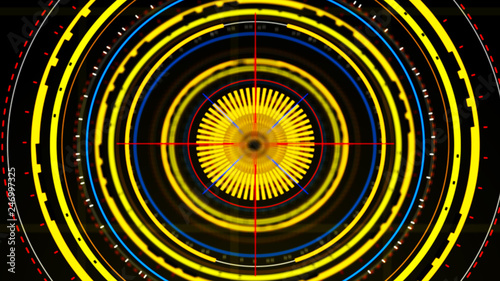 The watermark will not be included on Canvas Print.: Futuristic control mechanisms on net background - scientific futuristic interface - round yellow abstra