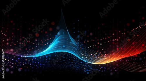 The watermark will not be included on Canvas Print.: Futuristic design with a flowing wave bathed in red to blue neon lights against a dark setting