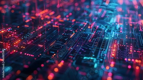 Canvas Prints futuristic digital circuit board with neon red and blue lights background for technology and ai
