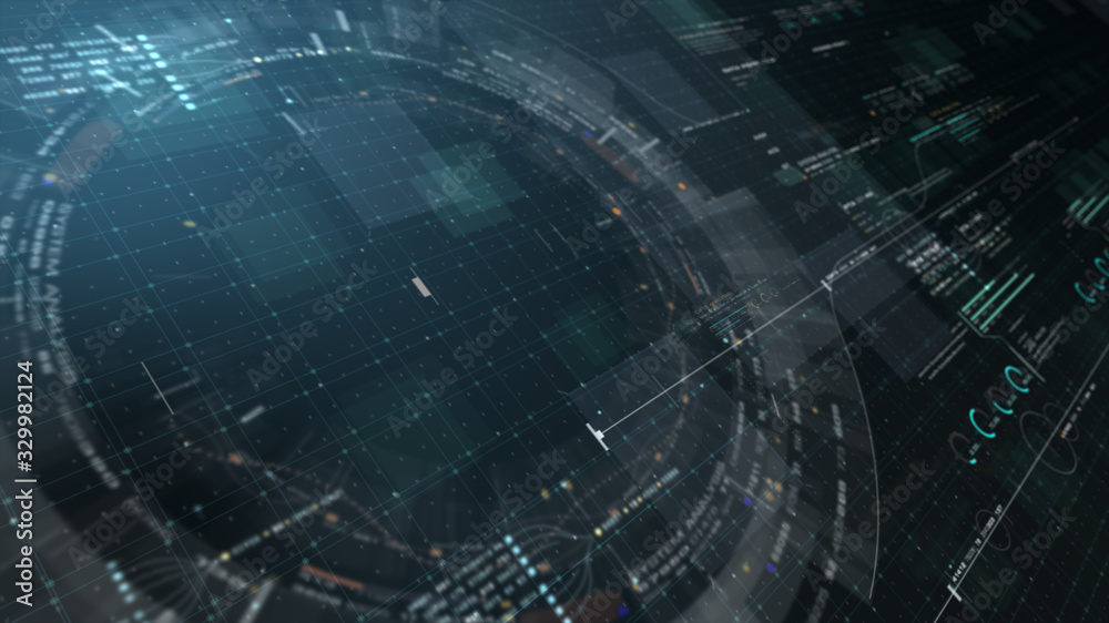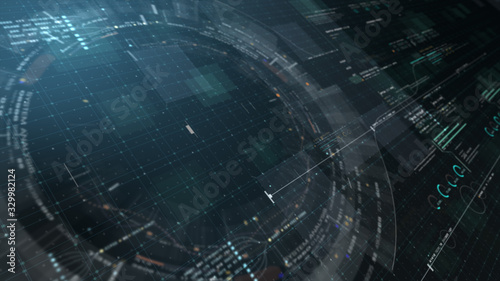 The watermark will not be included on Canvas Print.: Futuristic motion graphic user interface head up display screen with holographic earth and digital d