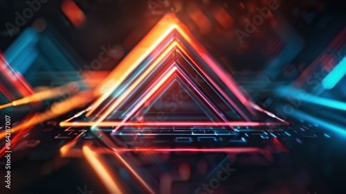 The watermark will not be included on Canvas Print.: Futuristic neon triangle with vibrant colors and abstract shapes representing advanced technology an