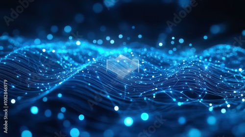 The watermark will not be included on Canvas Print.: Futuristic technology background with glowing lines and particles, blue technology background with a