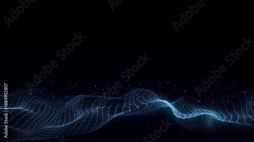 The watermark will not be included on Canvas Print.: Futuristic technology wave - digital cyberspace - abstract wave with moving particles on a blue backgr