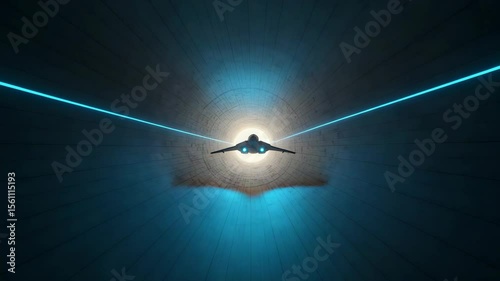 Canvas Prints futuristic voxel spaceship flies through illuminated blue neon tunnel in digital art