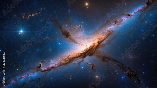 The watermark will not be included on Canvas Print.: Galactic landscape with vibrant colors and space for text overlay