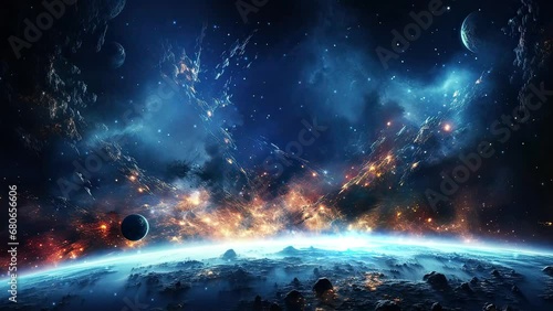 Canvas Prints galaxy and nebula. flying over the blue planet. abstract space background. endless universe with sta - Canvas Prints Canvas Prints galaxy and nebula. flying over the blue planet. abstract space background. endless universe with sta - Canvas Prints