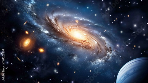 Canvas Print : Galaxy glowing core and spiraling arms in space image - abstract formation against starry sky photogr