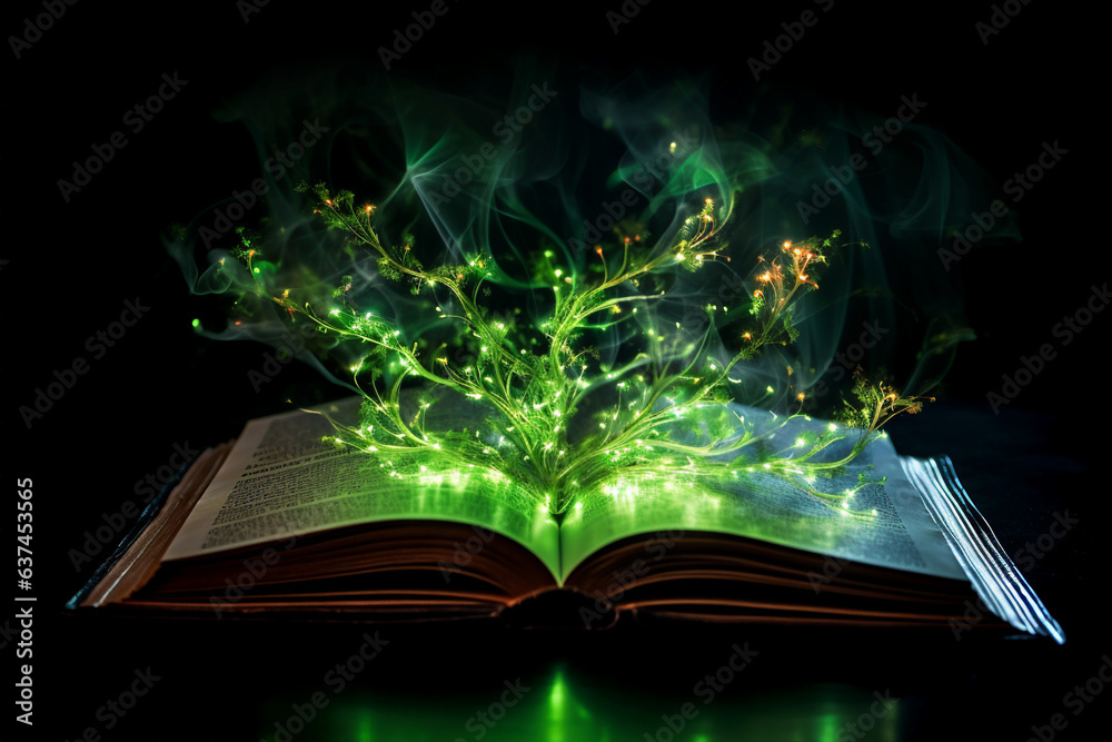 Canvas Prints generative ai collage picture image of magical open book with speel for dark magic