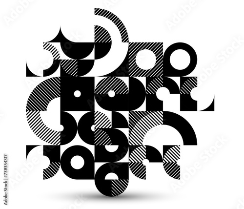 The watermark will not be included on Canvas Print.: Geometric abstract black and white art, vector geometrical background with tiles of circles and othe