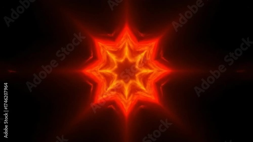 The watermark will not be included on Canvas Print.: Geometric abstract fire patterns pulsating energetically, a seamlessly looping video glow, high-tech