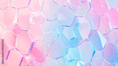 The watermark will not be included on Canvas Print.: Geometric background with pink and blue connected lines and dots arranged in a crystalline hexagon p