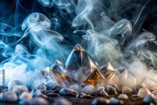 The watermark will not be included on Canvas Print.: Geometric crystal object in smoke texture on dark background