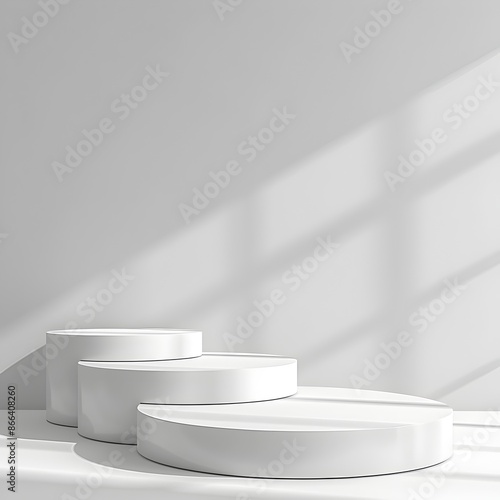 The watermark will not be included on Canvas Print.: Geometric white platforms on minimalist backdrop for multi product displays and presentations