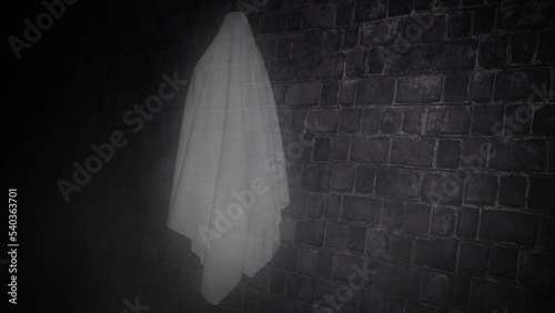 The watermark will not be included on Canvas Print.: Ghost floating along dark brick wall 4k loop features a floating ghost flying down a dark hallway al