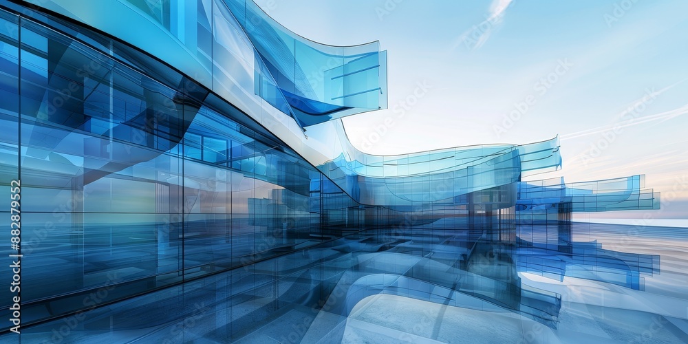 The watermark will not be included on Canvas Print.: Glass minmalistic architectural forms