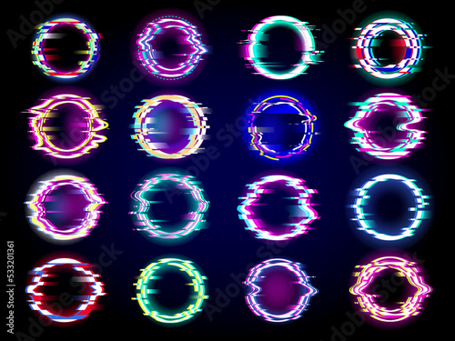Canvas Prints glitches collection. neon glowing circle glitches templates pixel rings with place for text recent v