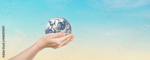 Canvas Prints globe in hands over blue sky background. save of earth. elements of this image furnished by nasa