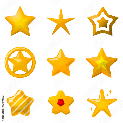 Canvas Prints glossy gold stars in cartoon style. icons set for game design projects