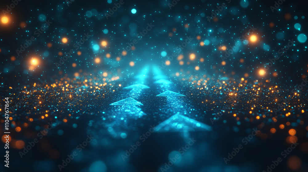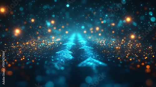 Canvas Prints glowing blue arrows ascend against dark green gradient, creating mesmerizing visual effect with spar