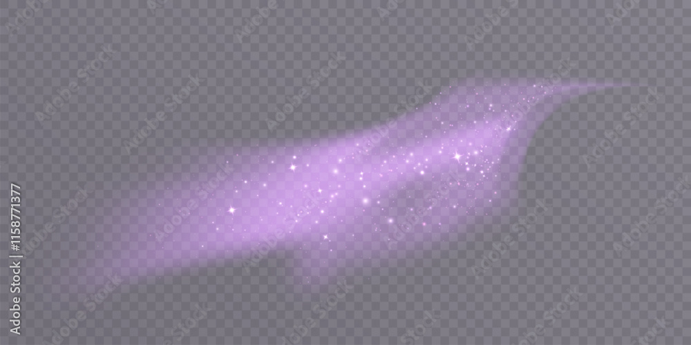 The watermark will not be included on Canvas Print.: Glowing bright bokeh and glitter effect of vibrant purple cloud with transparent glare of small part