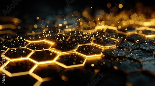 Canvas Print : Glowing honeycomb pattern in golden yellow color with sparkles