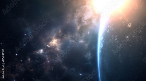 Canvas Prints glowing nebula near planet on dark space image. gas formation with sparks and globe atmosphere photo