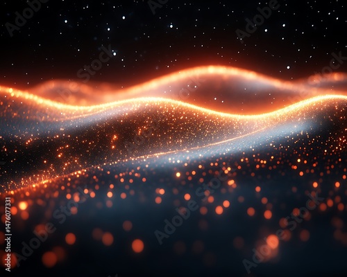 The watermark will not be included on Canvas Print.: Glowing orange waves of light floating in a dark starry space