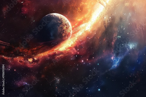 The watermark will not be included on Canvas Print.: Glowing planet in the fiery nebula