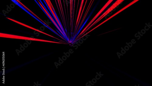 The watermark will not be included on Canvas Print.: Glowing red and blue line light rays rotating on black background - symmetry neon tunnel backdrop ani