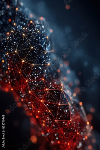 The watermark will not be included on Canvas Print.: Glowing red and blue polygonal patterns with interconnected points and lines