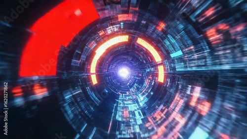 The watermark will not be included on Canvas Print.: Glowing sci fi tunnel rotating with red and orange lights