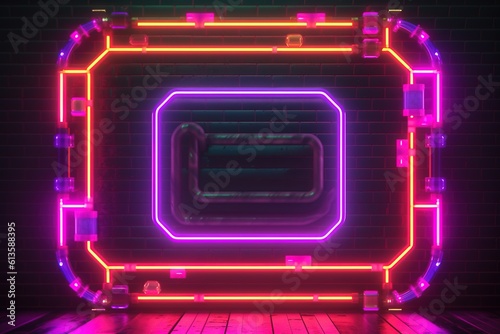 The watermark will not be included on Canvas Print.: Glowing sign with glowing lights - colorful neon frame design - generative ai