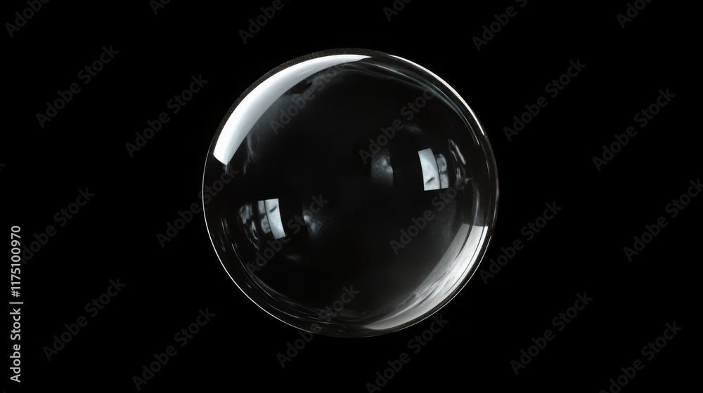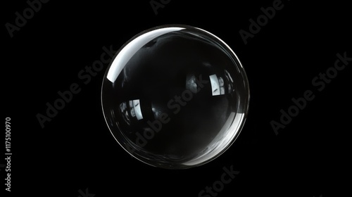 The watermark will not be included on Canvas Print.: Glowing soap bubbles isolated on black background - abstract soapy random spheres 3d brutalism design