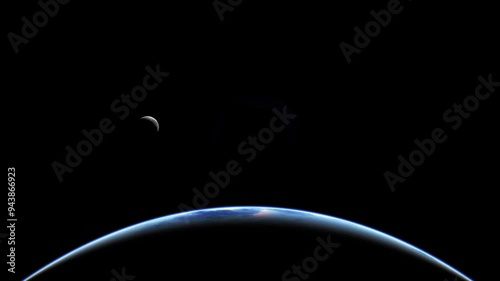 The watermark will not be included on Canvas Print.: Glowing surface of planet earth and moon black background