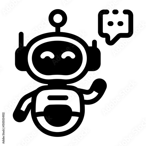The watermark will not be included on Canvas Print.: Glyph icon of robot chat interaction