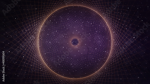 The watermark will not be included on Canvas Print.: Gold and purple vortex abstract circles line art in space - background