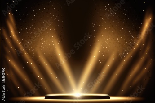 The watermark will not be included on Canvas Print.: Gold lights rays stage scene background podium created by generative ai