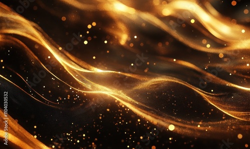 The watermark will not be included on Canvas Print.: Golden abstract waves with sparkling particles