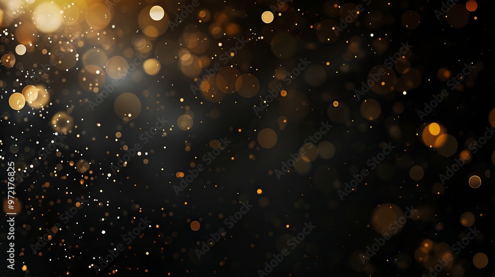 The watermark will not be included on Canvas Print.: Golden bokeh confetti overlay with glowing yellow circles and sparkling dust, creating a luxurious f