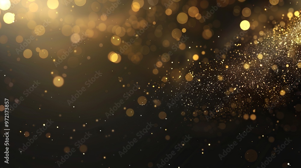 The watermark will not be included on Canvas Print.: Golden bokeh confetti overlay with glowing yellow circles and sparkling dust, creating a luxurious f