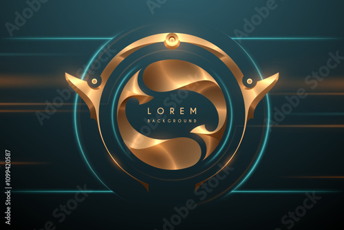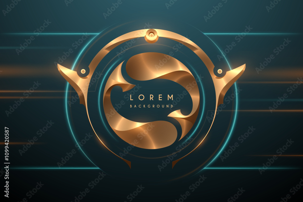The watermark will not be included on Canvas Print.: Golden circle ornate frame with light effect