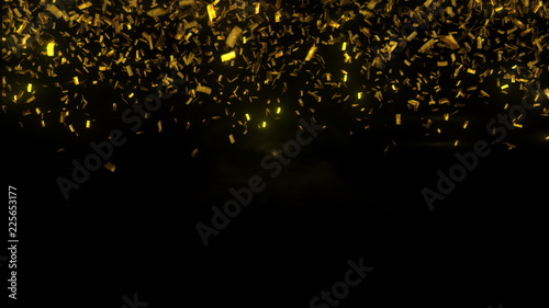 The watermark will not be included on Canvas Print.: Golden confetti fall on black background - party shiny rain - grainy abstract texture design element -