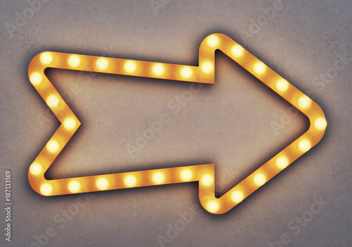 Canvas Prints golden neon arrow on a concrete background. 3d rendering