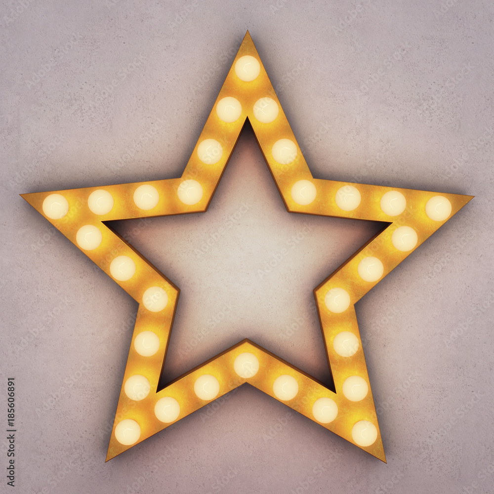 Canvas Prints golden retro star with glowing light bulbs on concrete background. 3d rendering - Canvas Prints Canvas Prints golden retro star with glowing light bulbs on concrete background. 3d rendering - Canvas Prints